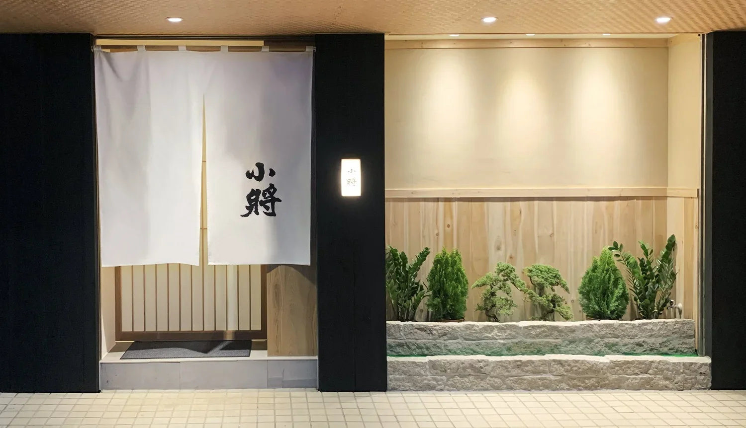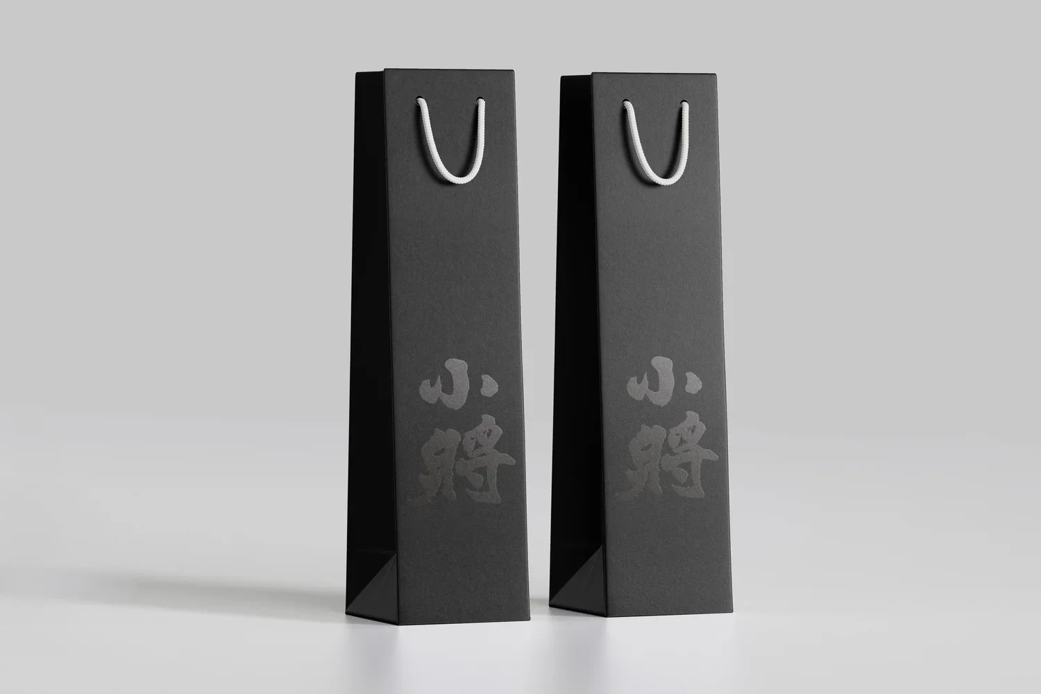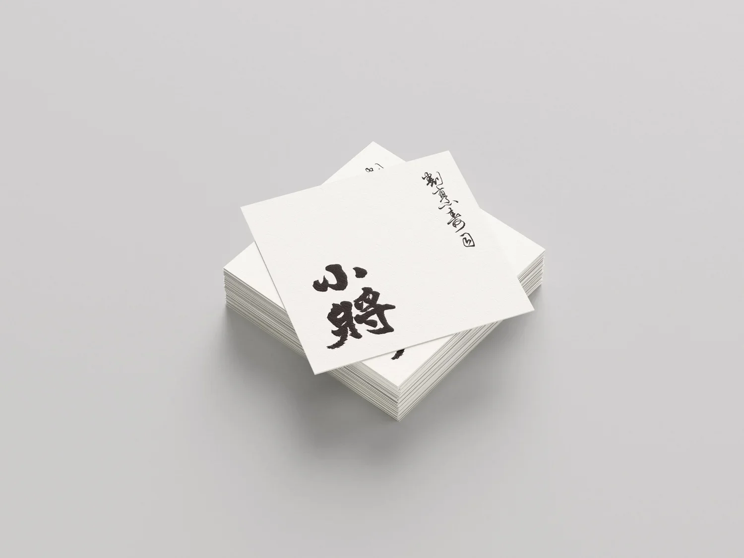 The design features calligraphy-style branding and a clean, sleek look with black and white colors to convey the image of a Japanese restaurant. The attention to detail extends to various aspects, such as artisanal thick business cards, textured name cards, tailored Japanese curtains, and customized uniforms, to reflect the chef's dedication to craftsmanship.