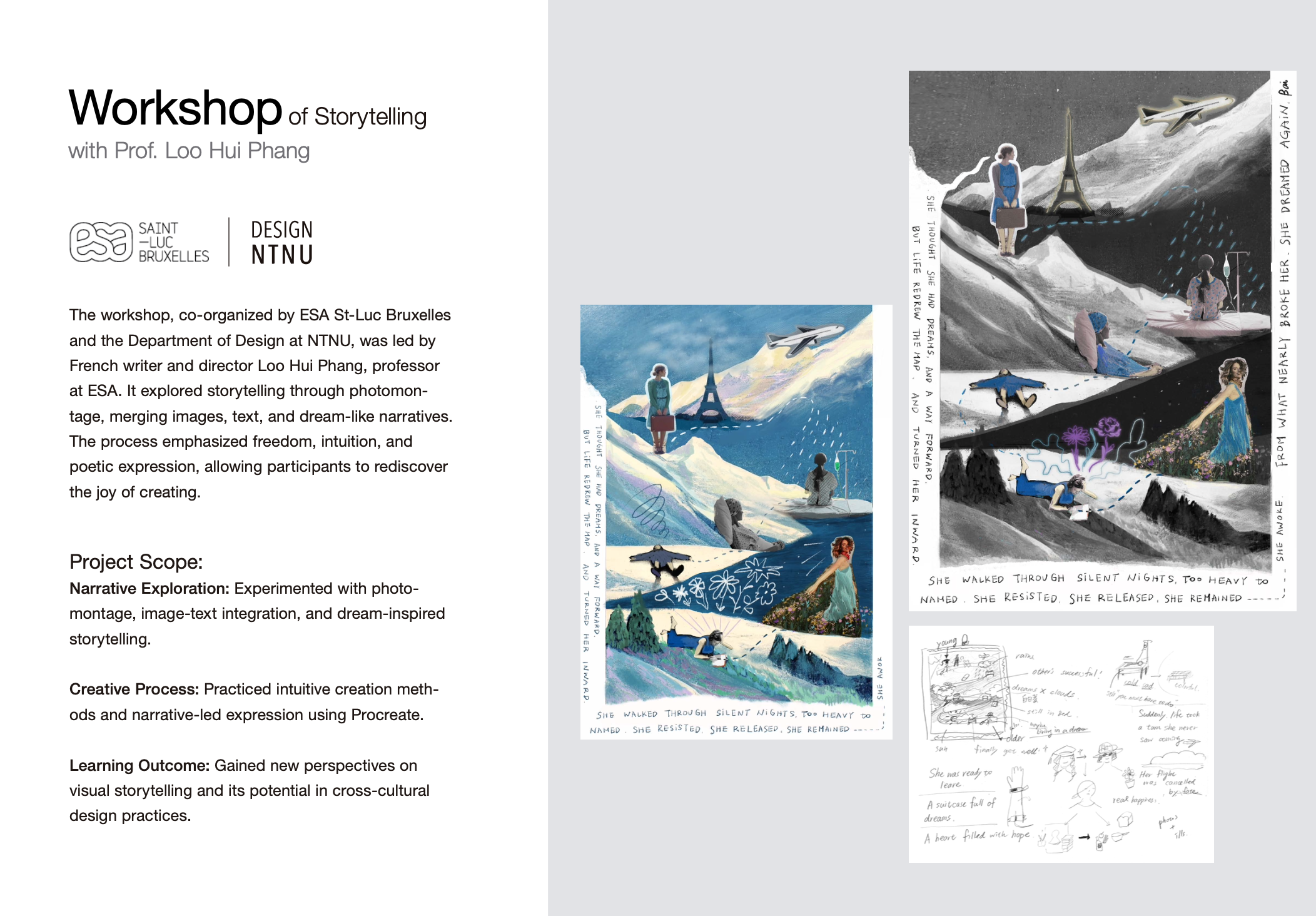 These projects emerged through engagement with European design perspectives, including learning narrative approaches (storytelling) in a workshop led by French director and writer Loo Hui Phang, where photomontage was used to create graphic, comic-like visual narratives.